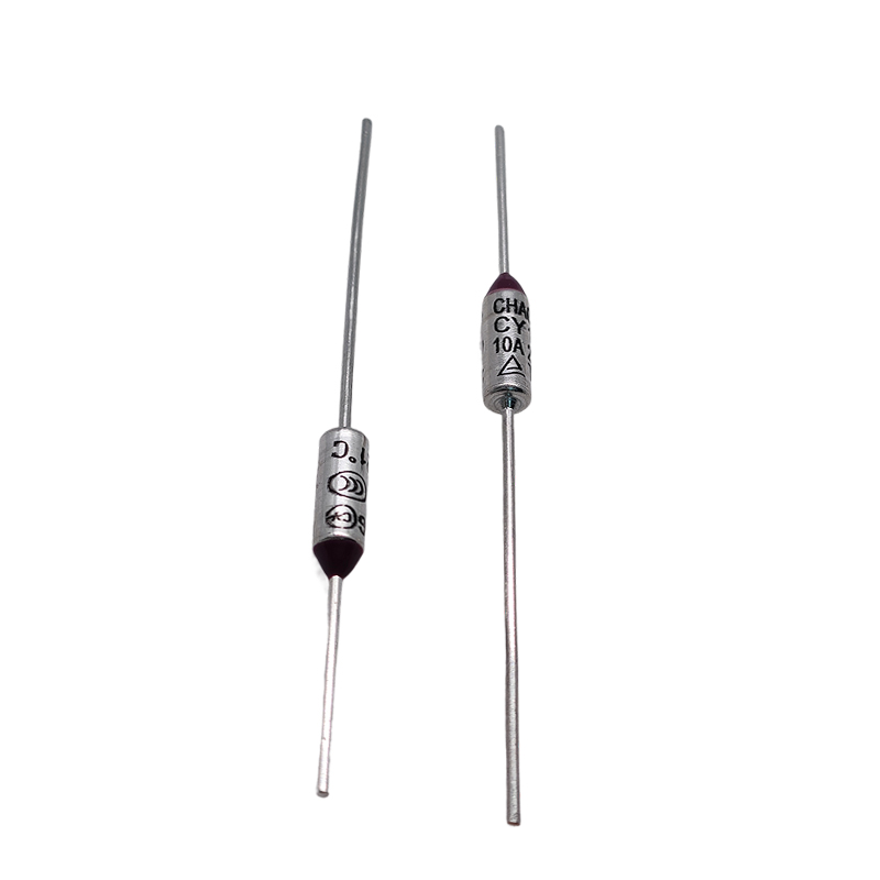 The CY121C is a CNAMPFORT®-series 10A 250VAC Thermal Cut-off or Thermal Fuse with 121°C functioning and 98°C holding temperature, axial leaded terminals, offers an accurate, reliable solution for upper limit temperature protection against overheating, these thermal cut-offs interrupt an electrical circuit when operating temperatures exceed rated temperature of thermal fuse, it is industry standard for over-temperature protection, the CY-series is applied to millions of appliances and personal care products, providing reliable backup protection for temperature controlling thermostats and other over-temperature conditions.