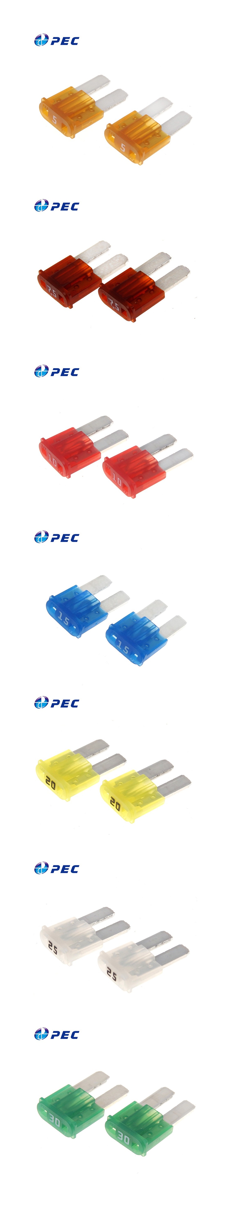 PEC日本太平洋精工汽车微型插片保险丝BFSL缩小BFMN的宽度、实现空间优化的最新型片式保险丝。额定电压 DC32V,安全开断能力 1000A,使用温度 -40℃~120℃,收容数 18,000,规格 ISO8820-12