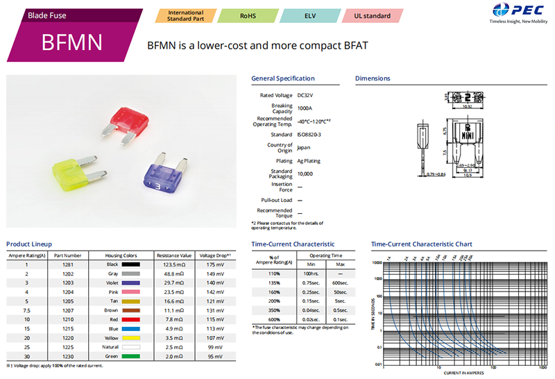 BFMN Blade fuse is a lower-cost and more compact BFAT